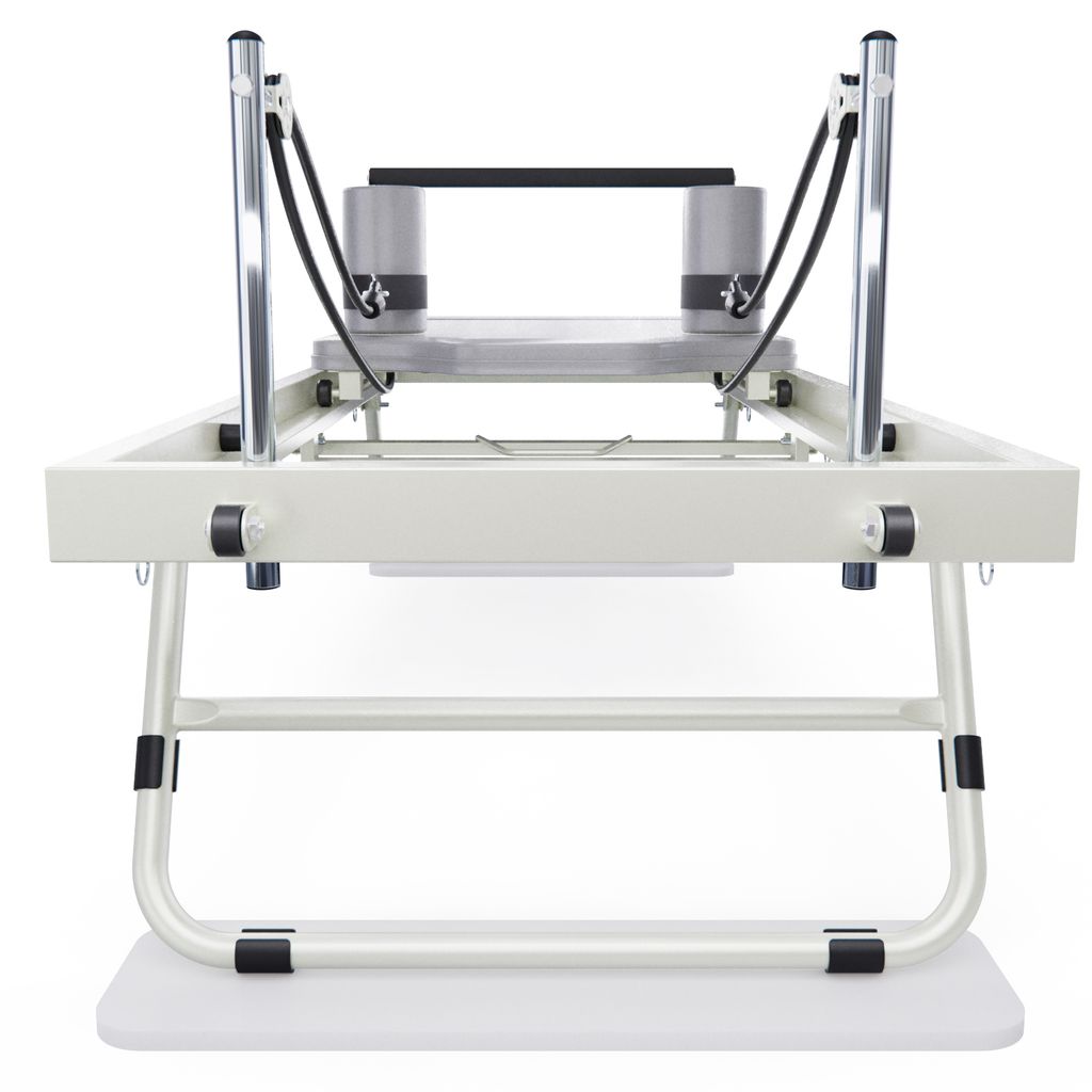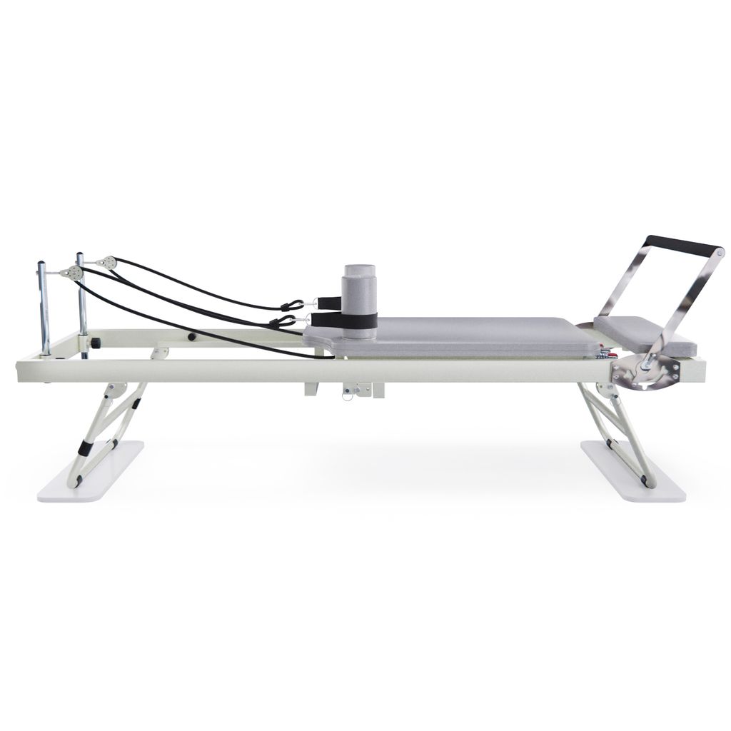 Реформер выполнен из высококачественных материалов и рассчитан на рост пользователя до 175 см и максимальный вес 120 кг. Размер подвижного сиденья 84,5 х 49 х 5 см обеспечивает комфорт при выполнении различных упражнений, а его особая форма помогает сохранить правильное положение головы и шеи. Расстояние от сиденья до пола — 44 см, что делает посадку максимально удобной.
