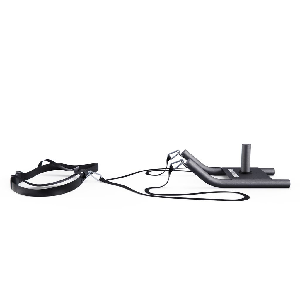 Специальные выступы вокруг посадочного места для установки весовых дисков обеспечивают быструю и безопасную замену нагрузки. В комплект входят необходимые усиленные ремни для тяги и переноски. Сани для силовых тренировок оснащены высококачественными утолщенными плечевыми ремнями шириной 5 см для снижения нагрузки на спину. Длина двойного ремня для тяги 184 см, ширина 2,5 см. Компактные габариты позволяют легко хранить и транспортировать оборудование.