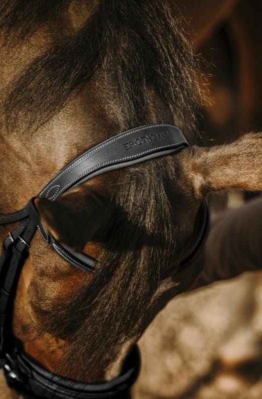 Уздечка с мягким анатомическим ободком и накладкой для носа.- Элегантность из анилиновой кожи высшего качества.- Комфорт и мягкость: Мягкий головной убор и комбинированная накладка для носа из ткани Clarino.- Изысканный дизайн: Белая прострочка.- Прочная: благодаря фурнитуре из нержавеющей стали, эта уздечка сочетает в себе роскошь и надежность.Продается без поводьев.