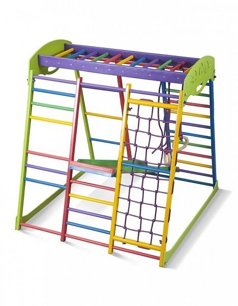 Разноцветный и красочный привлекательный ДСК «Юнга мини» обязательно привлечет внимание Вашего малыша. Этот веселый яркий спортивный комплекс предназначен для деток младшего возраста и может выдерживать динамические нагрузки до 40 килограмм. Конструкция данного изделия создана с учётом всех физиологических особенностей развития детей раннего и дошкольного возраста и продумана до мелочей, включая расстояние между перекладинами. А так же он сможет прекрасно дополнить интерьер детской комнаты и стать незаменимым местом для игр и спортивных развлечений Вашего ребенка. Порадует родителей и оригинальная конструкция изделия, благодаря которой спортивный комплекс легко складывается и не занимает много места.