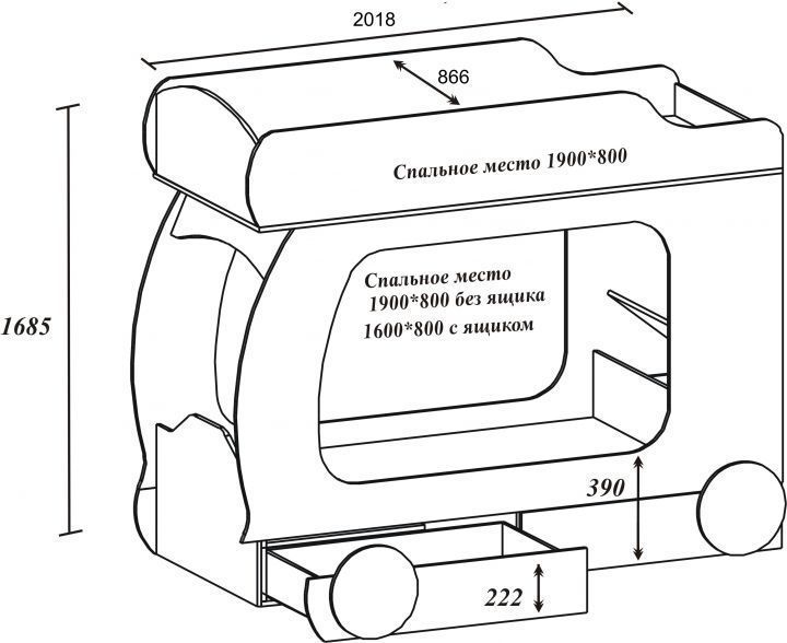 Внизу кровати расположены вместительные ящики, где можно хранить игрушки или детскую одежду.