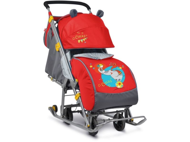 - Складной трехсекционный козырек, высокий, с декоративными ушками, смотровое окошко для наблюдения за ребенком