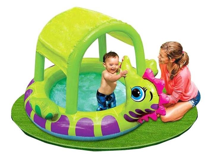 Здесь продумано все: от навеса, защищающего ребенка от солнца, до мягких бортиков, надежно удерживающих малыша внутри бассейна.