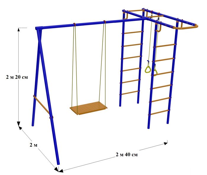 Высота комплекса от земли без бетонирования- 2 м. 20 см.
