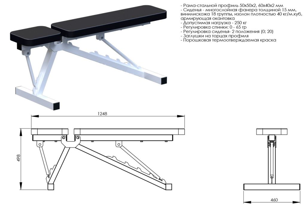 • Конструкция тренажера изготовлена из стального профиля 50х50х2, 60х40х2мм;