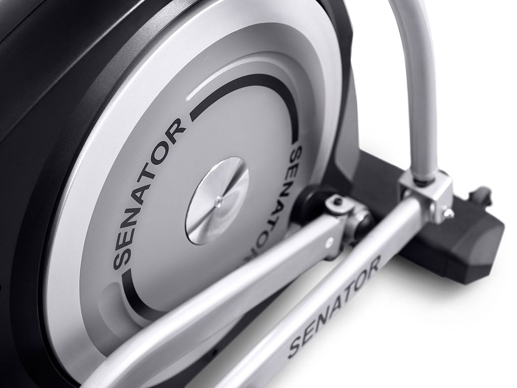 Переднеприводной эллиптический тренажер с генератором Proxima Senator для использования в домашних условиях. Наиболее удобен и комфортен для пользователей. Он устойчивый: оснащен сдвоенными колесами на металлических направляющих и фронтальными стабилизаторами. Минимальный Q-фактор 8 см в сочетании с длиной шага 58 см и высотой шага 23 см позволяет почувствовать естественные беговые движения, а дополнительные мягкие педали подарят вам ощущения мягкости бега. Функция изменения угла наклона педалей «ANKLE SUPPORT»™ фиксирует стопу пользователя в индивидуально комфортном положении и позволяет прорабатывать разные группы мышц за счет перераспределения нагрузки.