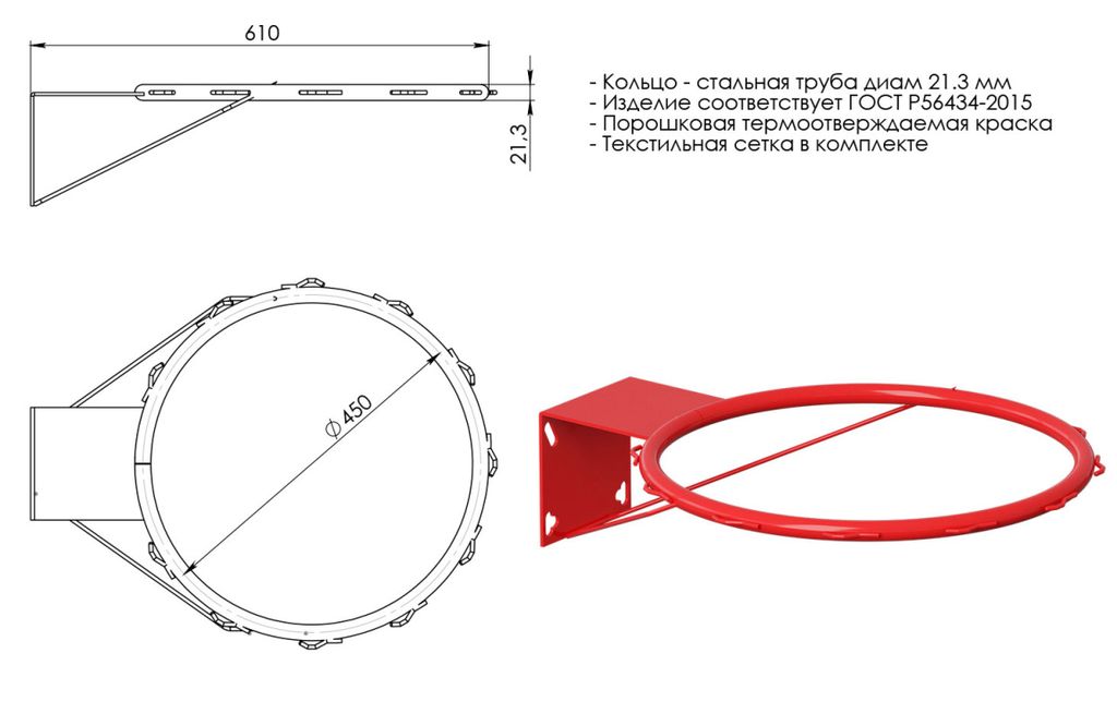 - Кольцо – стальная труба диаметром 21,3мм, крепление из стального листа 3мм;