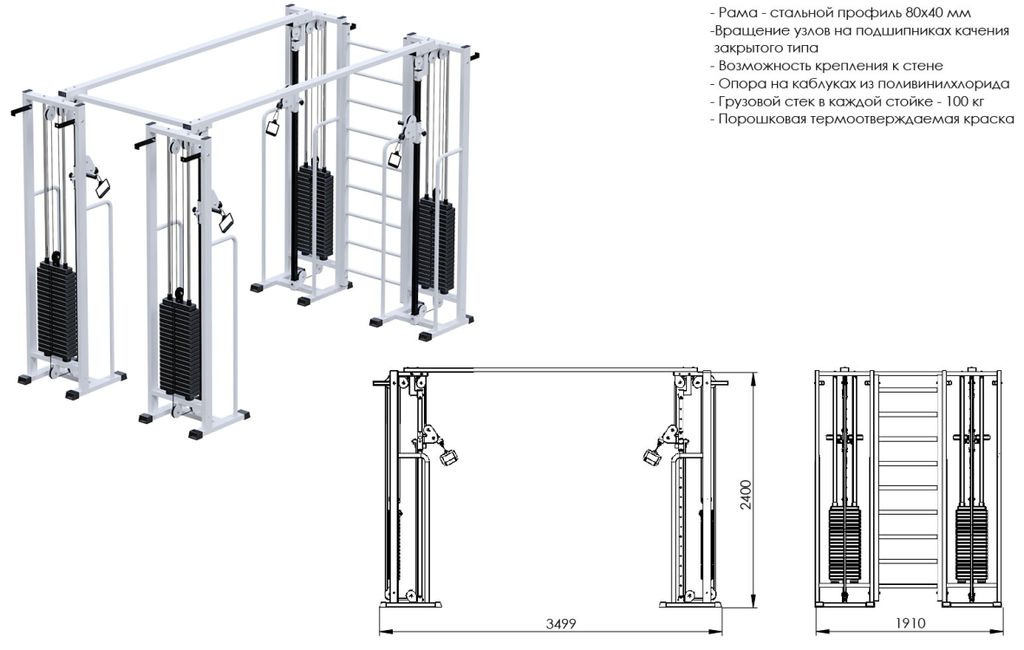 Тренажер Потапова (стек 4х100кг) JAGUAR-SPORT AR081.4х2400
