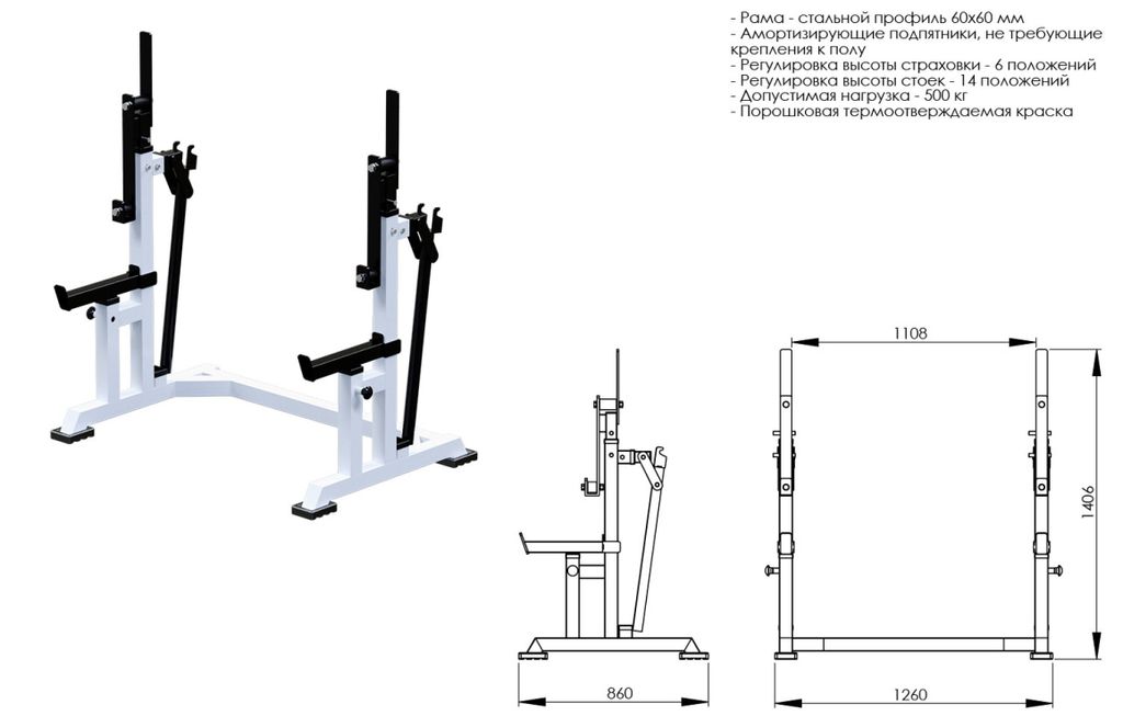 - Конструкция стойки изготовлена из стального профиля 60х60мм, в изделии используется конструкционный профиль толщиной 2 и 3мм в зависимости от прилагаемой нагрузки;
