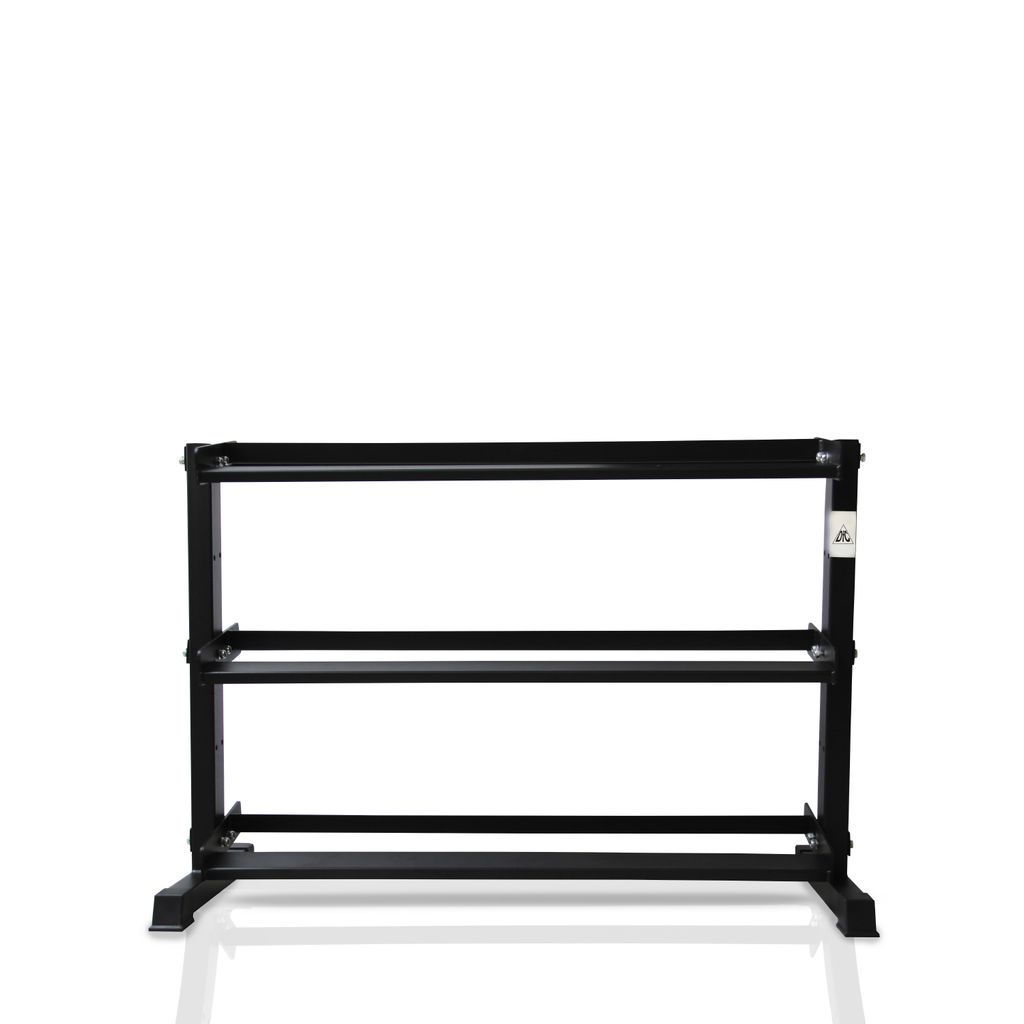 Стойка для хранения профессиональных гантелей DFC из серии POWERGYM RA080 чёрного цвета для домашнего использования.