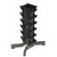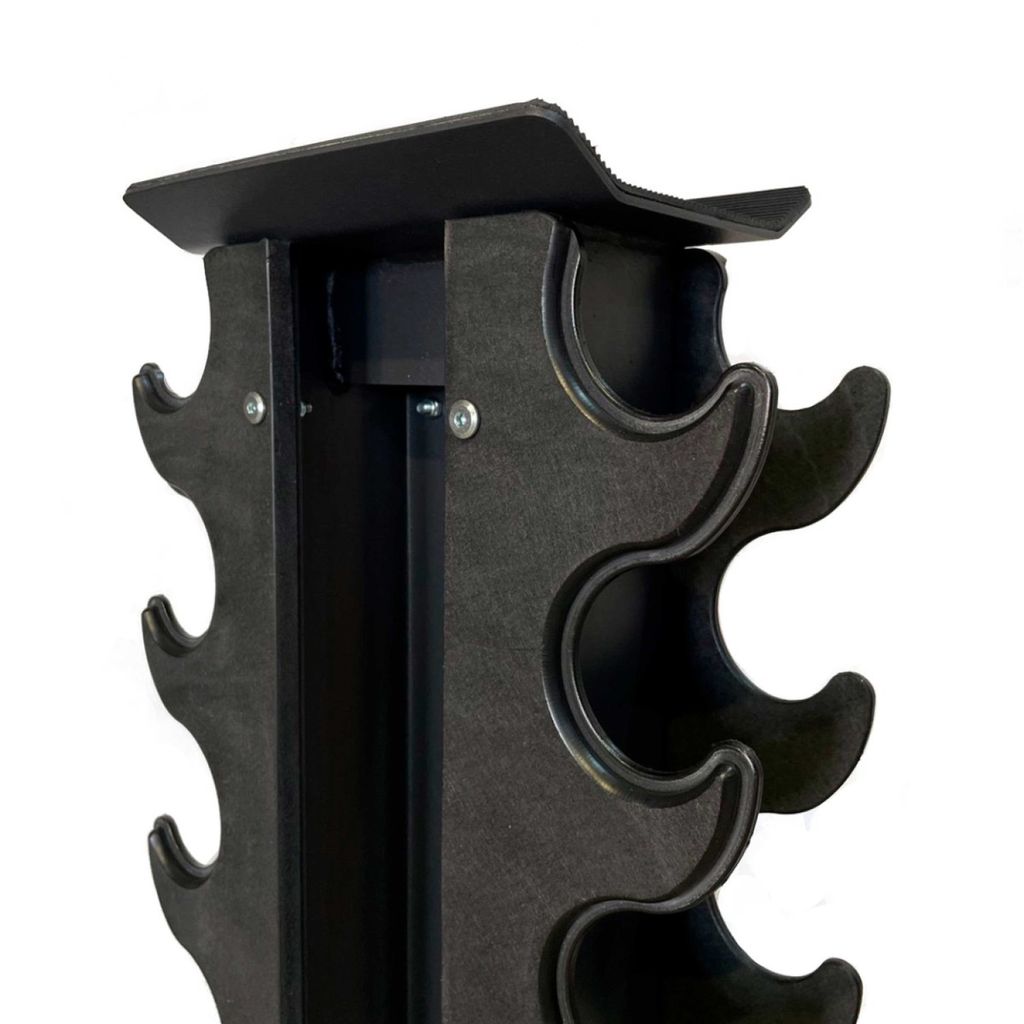Стойка предназначена для хранения и удобного использования гантелей ряда CHROME и гексагональных обрезиненных гантелей весом 1-5 кг, длиной рукояти не менее 110 мм. Представляет собой сборную металлическую конструкцию с двумя вертикальными полками и ложементами под гантели.