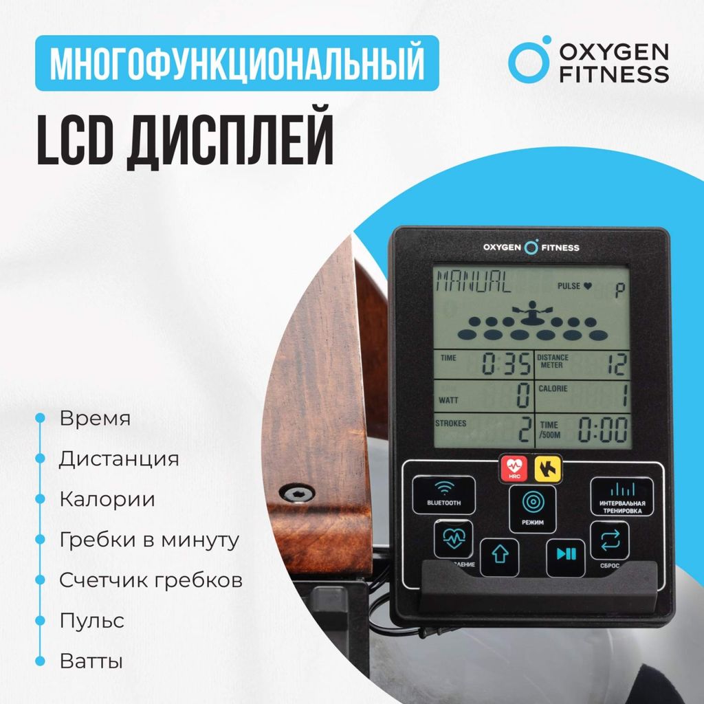 С помощью LCD консоли на русском языке легко отслеживать показатели во время тренировки, такие как: время, дистанцию, калории, количество гребков в минуту, пульс и ВАТТ-ы. С 8 встроенными программами, включая ручной режим, целевые программы и интервальные программы, вы сможете выбрать оптимальные упражнения для достижения фитнес-целей, подстраивая тренировки под свои потребности и желания.