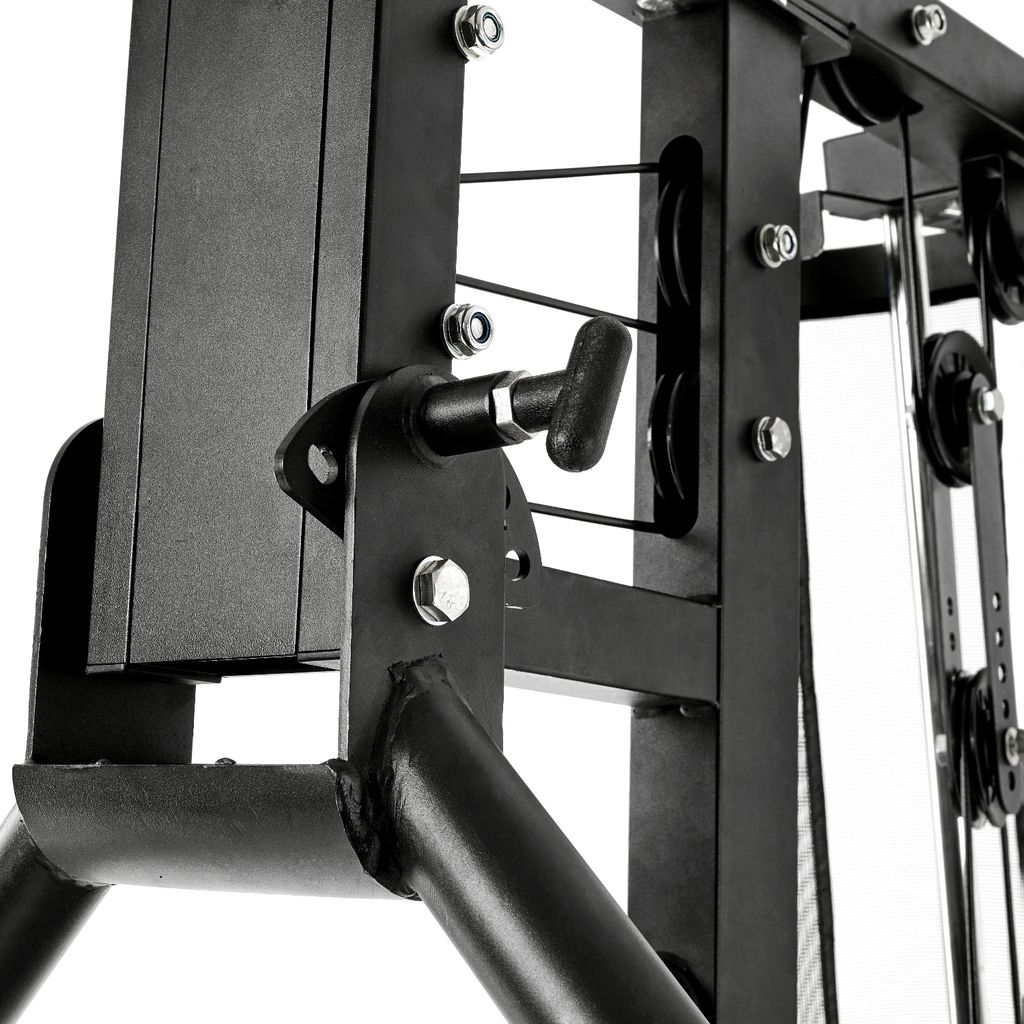 - Тяга снизу. Используется для силовых упражнений на мышцы спины, бицепса, ног. Для комфорта и безопасности предусмотрена платформа с рифлёной поверхностью. Рукоять с нескользящим покрытием входит в комплектацию. Максимальная нагрузка до 130 кг.