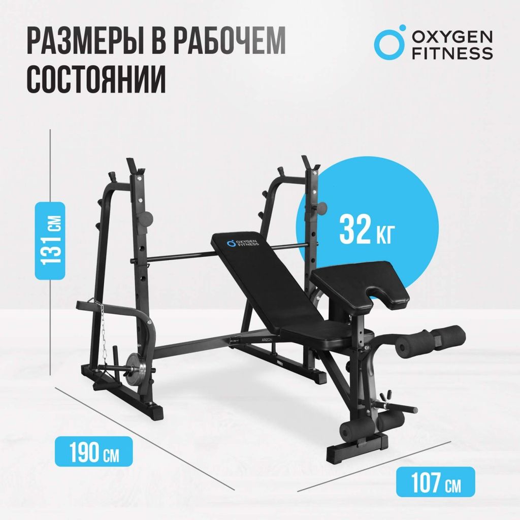 Многофункциональная силовая скамья OXYGEN FITNESS ARIZON — это идеальный инструмент для выполнения разнообразных силовых упражнений, направленных на развитие мышц рук, груди, плеч и торса. С максимальной весовой нагрузкой до 200 кг, эта скамья подходит как для начинающих, так и для опытных атлетов. Компактные размеры в рабочем состоянии (190 см в длину, 107 см в ширину и 131 см в высоту) позволяют легко интегрировать скамью в любое пространство, обеспечивая при этом максимальную функциональность.