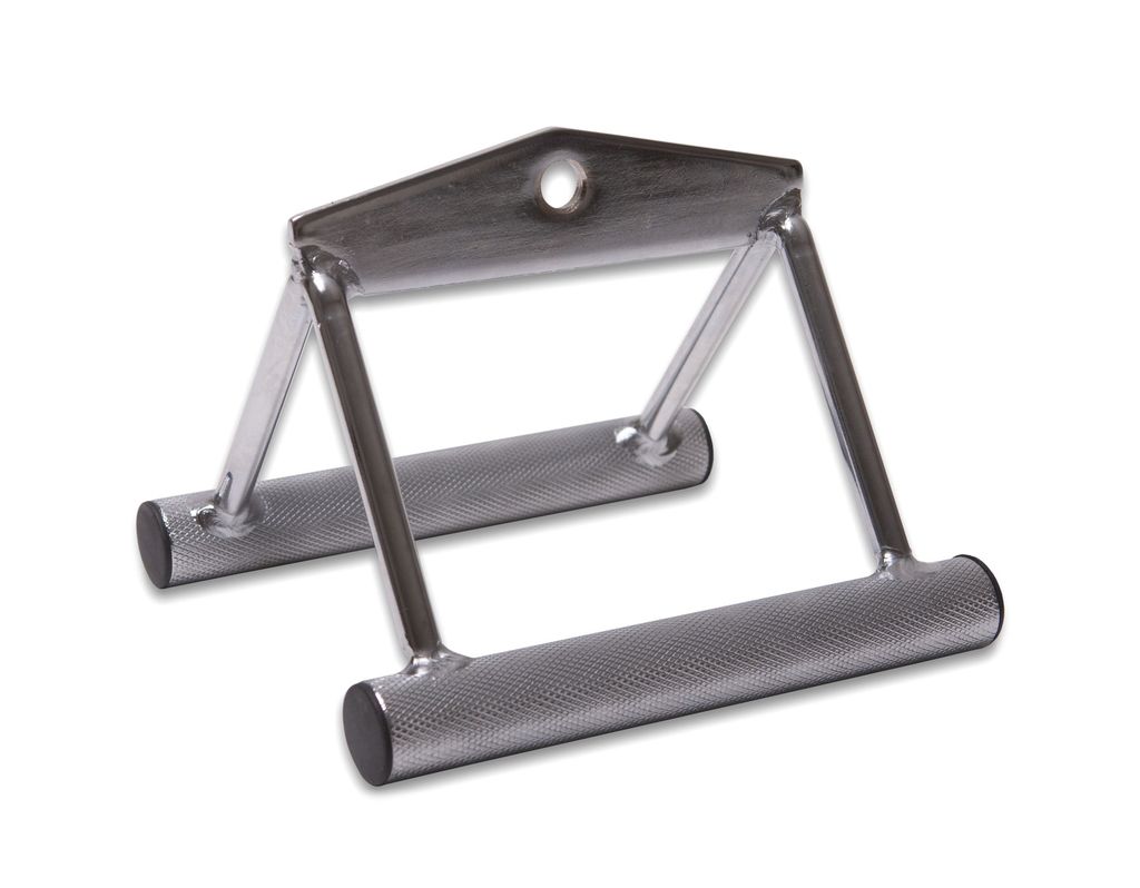 Рукоятка подходит для большинства тренажёров со встроенными весами (стеками) и имеет полые трубчатые ручки с насечками для комфортного и надёжного хвата.
