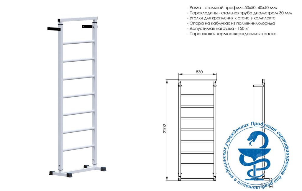 - Шведская стенка может быть как самостоятельным тренажером, который обязательно нужно будет прикрепить к стене с помощью уголков, так и послужить дополнением к любой профессиональной и реабилитационной раме серии AR при высоте 2200мм.