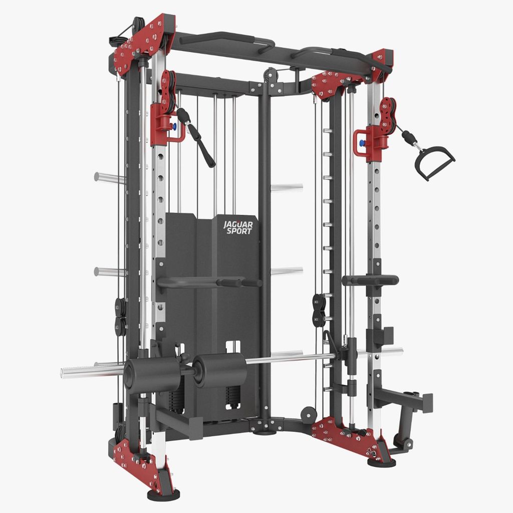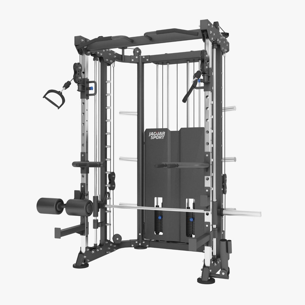 Многофункциональный тренажёр JAGUAR-SPORT JS-C-81 — это универсальная силовая станция для полноценной тренировки всего тела в зале или функциональной зоне. Конструкция объединяет в себе машину Смита, кроссовер и силовую раму, что позволяет заменить сразу несколько отдельных тренажёров и существенно сэкономить место.