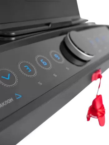 - LED-дисплей с белой индикацией, подставка для планшета и сенсорные датчики на поручнях для контроля пульса;