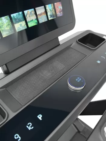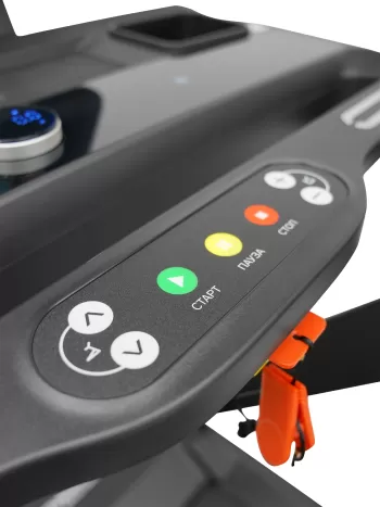 Консоль продумана для реальной тренировки: яркий LED-дисплей с русским интерфейсом, сенсорная панель, быстрые кнопки на поручнях с подсветкой, удобная шайба управления. Всё под рукой и интуитивно понятно. Поддерживаются приложения FITSHOW, KINOMAP и ZWIFT, есть подключение Bluetooth-кардиодатчика.