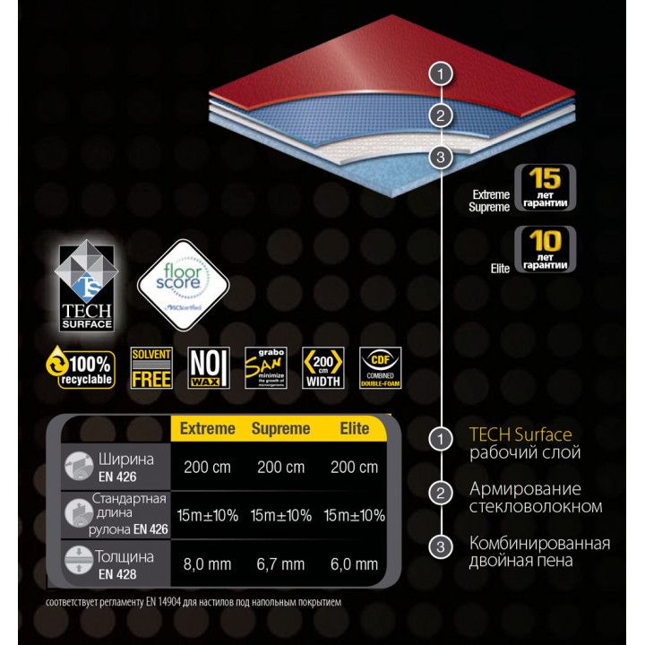 Спортивное напольное ПВХ покрытие GraboSport Mega