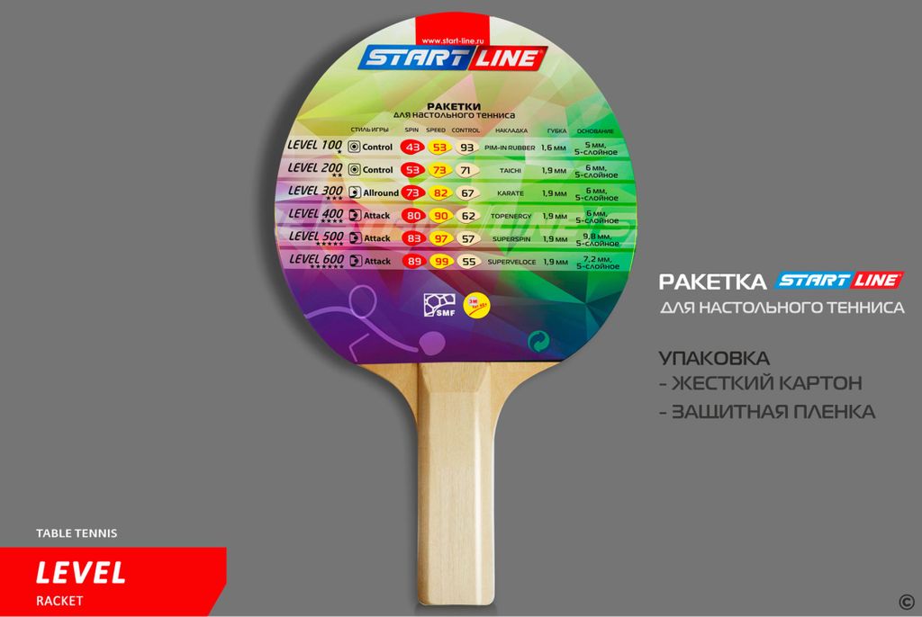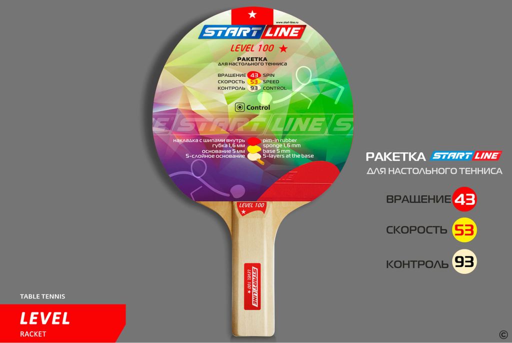Ракетка для настольного тенниса Level 100 соответствует высокому современному стандарту качества, имеет обновленный дизайн и улучшенные технологические и игровые характеристики.
