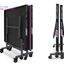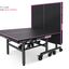 Обрезиненные колеса диаметром 125 мм на подшипниках гарантируют легкость перемещения. На каждой стороне стола установлено четыре колеса, два из которых оснащены тормозом, что гарантирует идеальную фиксацию и стабильность стола во время игры. Регулируемая высота боковых опор дает возможность адаптации стола к различным условиям, позволяя выставить идеальный уровень игрового поля даже на неровной поверхности.