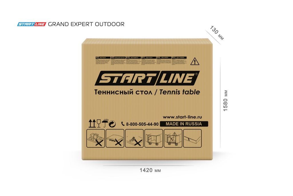 Размер стола в рабочем положении: 274 см в длину, 152,5 см в ширину и 76 см в высоту, что соответствует стандарту ITTF.