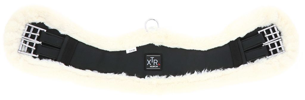 Меховая Синтетическая подпруга из полиуретана, похожего на кожу, с подкладкой из синтетической овчины высокой плотности. Роликовые пряжки из нержавеющей стали на двойных эластичных концах с обеих сторон. Имеет центральное кольцо.