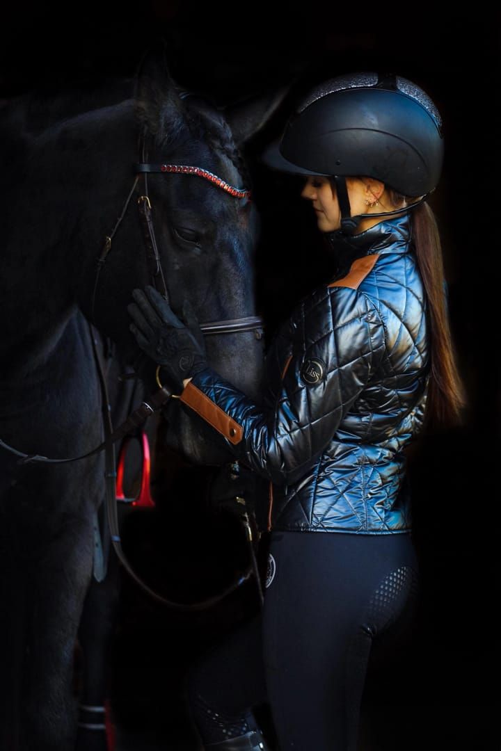 Куртка для верховой езды! Стеганная куртка на синтепоне из мягкой, блестящей тканиТкань водо- и грязеотталкивающая. Не впитывает запах. Износостойкая.Легкая в уходеПриталенный кройВставки и кант из эко-кожиФурнитура: металл, золото.Фирменный вышитый шеврон