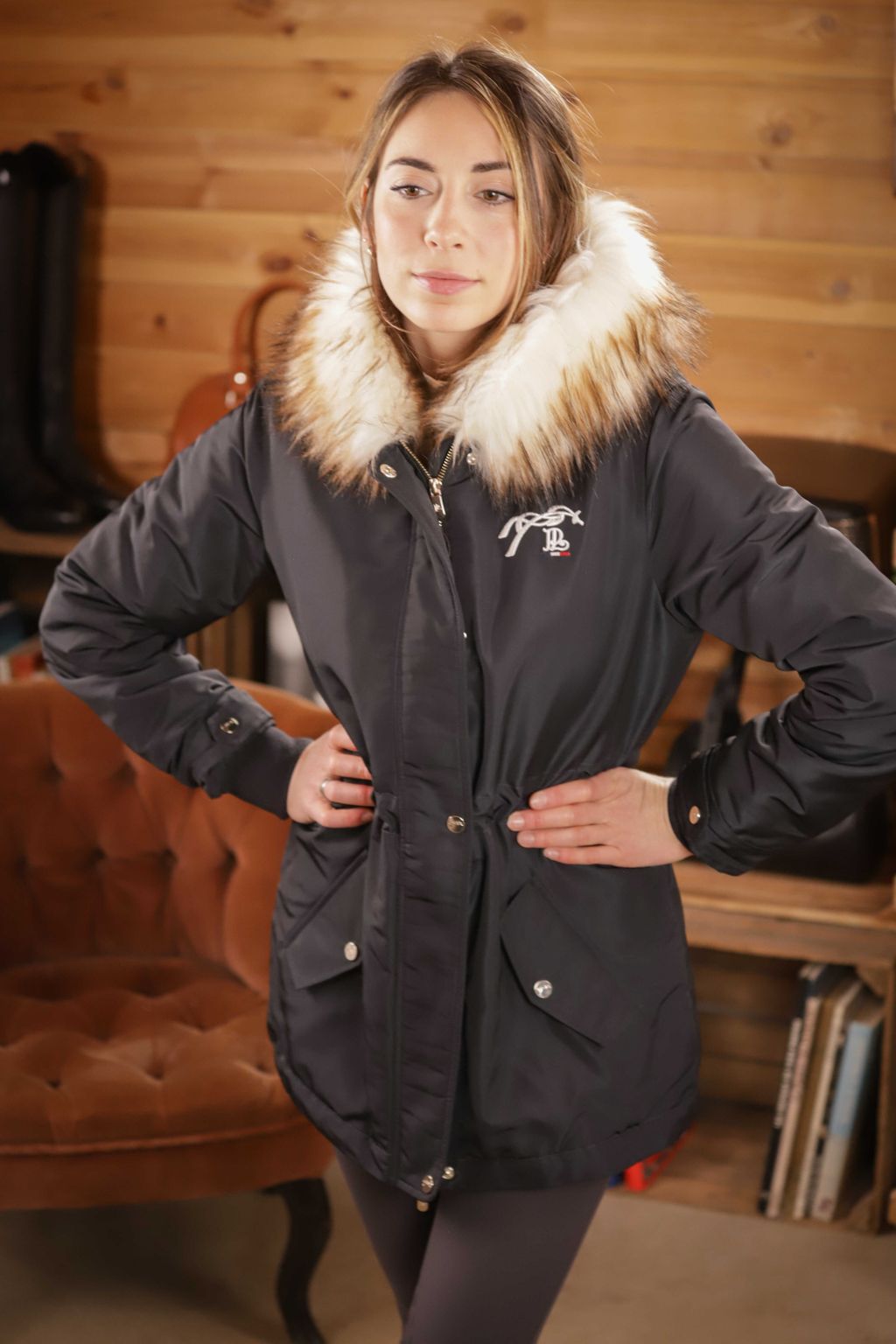 Парка "Мега" создана на основе культовой куртки-бомбера Lyon, но доступна здесь в варианте средней длины. Спереди она застегивается на крупную молнию с клапаном на кнопках, подкладка из толстого слоя ультрамягкого флиса, а капюшон отделан красивым искусственным мехом. Парка Mega Lyon с завязками на талии и двумя угловыми карманами, застегивающимися на кнопки с каждой стороны. Слегка удлиненная сзади, она имеет разрез для дополнительного комфорта. Идеально подходит для прогулок на конюшне, а также в городе в холодное время года.Состав: Основная ткань, набивка, подкладка и искусственный мех: 100% полиэстер.