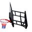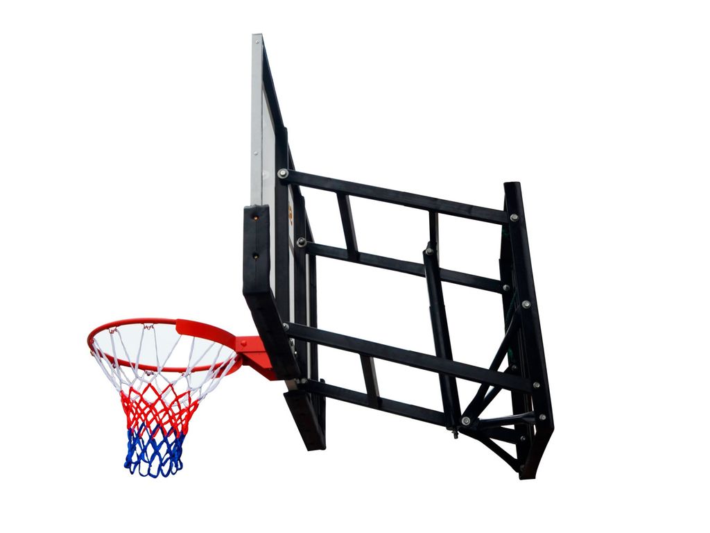 Щит изготовлен из прозрачного ударопрочного акрила, оснащен баскетбольным кольцом 45 см, с вертикальной пружиной, которая обеспечивает плавный «отрыв» кольца при ударе.