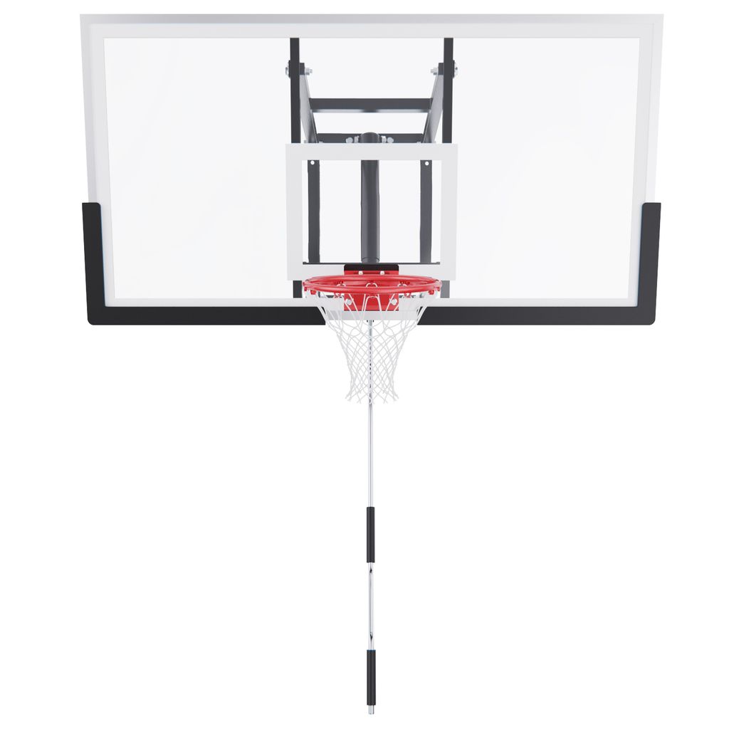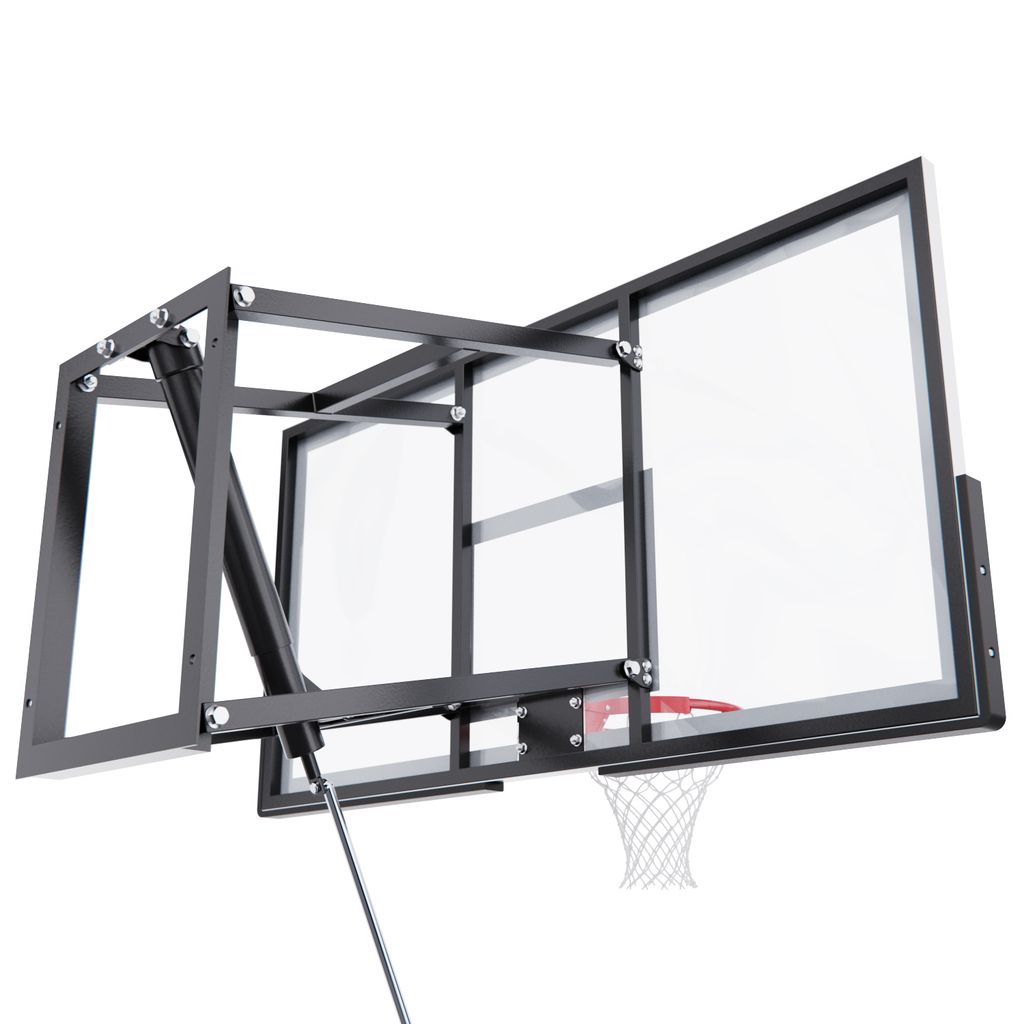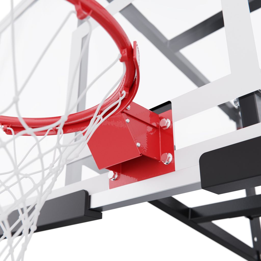 Щит изготовлен из прочного закалённого стекла толщиной 8 мм — материала, обеспечивающего отличный отскок мяча и устойчивость к ударам. Его размеры — 152 х 80 см, что делает его максимально приближенным к профессиональному оборудованию. Регулируемый вынос щита (51–55,5 см) повышает безопасность и удобство во время игры. Дополнительную безопасность обеспечивает защита Poly Pade, установленная по нижнему краю щита.