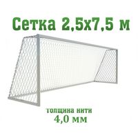 Сетка для футбольных ворот 7,5х2,5х2х2 м яч. 100х100 мм, нить 4.0 (комплект 2 шт)