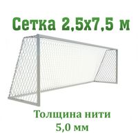 Сетка для футбольных ворот 7,5х2,5х2х2 м яч. 100х100 мм, нить 5.0 (комплект 2 шт)