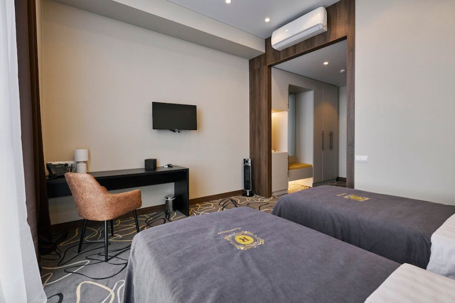Семейный номер с одной большой кроватью. В номере санузел. Окно, телевизор. Душевая общая, на этаже, отдельно мужская, и женская. Wi-Fi. Есть кухонная зона. Цена может меняться в зависимости от спроса - точную стоимость уточняйте по телефону!