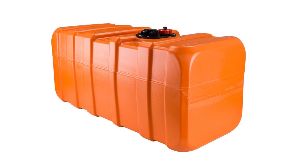Универсальный стационарный топливный бак для катеров и лодок, может использоваться как переносной благодаря наличию ручек.. На верхней стороне бака расположен инспекционный лючок, через который легко производить внутренний осмотр бака и его чистку. На крышке лючка расположены переходники "елочка" для присоединения топливного шланга и штуцера вентиляционного патрубка, заливная горловина, стандартное крепление для монтажа датчика уровня, отверстие со стандартной резьбой 1/4 NPT для установки штуцера обратного слива топлива. Крышка заливной горловины оборудована сапуном.. Выполнен из пластика высокой плотности, поэтому топливо с агрессивными примесями не наносит ущерба баку..