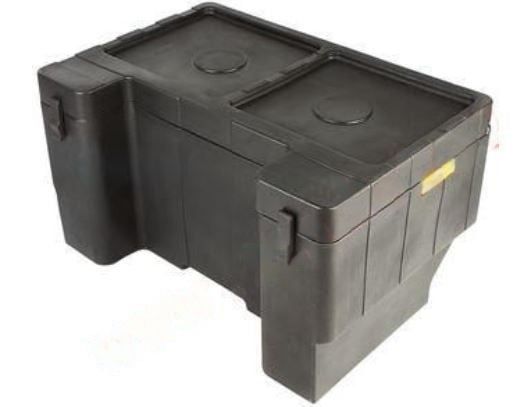 Это большой вместительный кофр, объемом до 100 литров, абсолютно герметичный, благодаря особой форме крышки и D-образному уплотнителю EPDM. Прорезиненные замки на металлической основе, обеспечиваю удобный доступ, не забиваются снегом и не замерзают. Пластик используемый в наших кофрах морозостойкий и устойчивый к экстремальным температурам, толщина стенок - 5 мм. Снабжен пластиковым светоотражающими катафотами и комплектом крепежа. На крышке кофра предусмотрены площадки для крепления канистр.