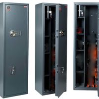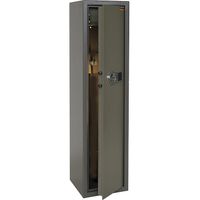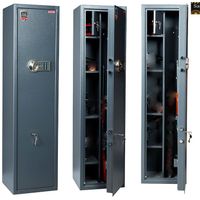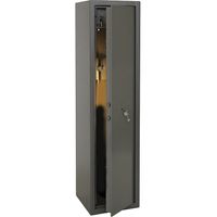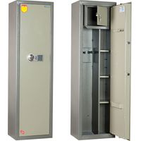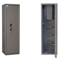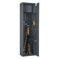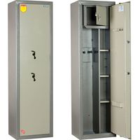 Размеры внешние, мм (ВхШхГ): 1400x450x350 Вес, кг: 83 Класс взломостойкости: Н0 Тип замка: Ключевой Количество стволов: 5 Макс. длина ствола, мм: 980 Толщина лицевой панели, мм: 3 Толщина боковых стенок, мм: 3 Цвет: серый Ложементы - металлические дер... -