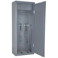 Размеры внешние, мм (ВхШхГ): 1400x670x350 Вес, кг: 99 Класс взломостойкости: Н0 Тип замка: Ключевой Количество стволов: 10 Макс. длина ствола, мм: 108 Толщина лицевой панели, мм: 3 Толщина боковых стенок, мм: 3 Цвет: серый Ложементы - металлические де... -
