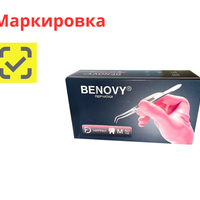 Перчатки медицинские диагностические (смотровые) одноразовые нестерильные "Benovy" нитриловые текстурированные на пальцах, неопудренные с однократной хлоринацией (манжета с валиком), цвет белый, размер M, 50 пар/упаковка, Китай (ООО "Бинови