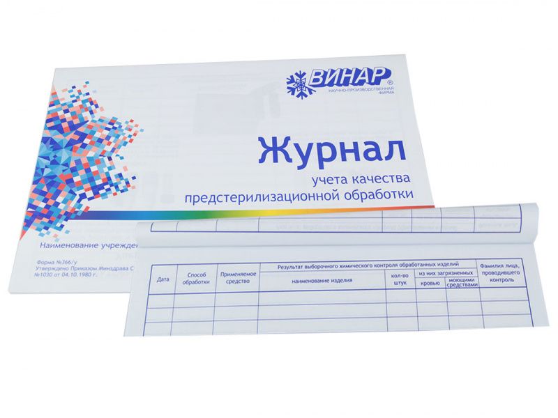 Журнал учета качества предстерилизационной обработки (ф366/у) (20 листов), формат А4, Россия (ООО "НПФ "Винар")