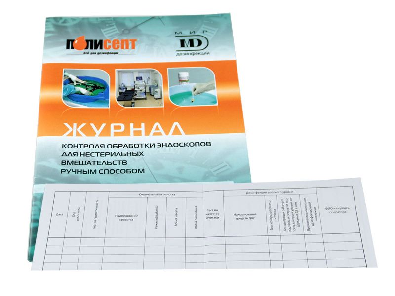 Журнал контроля обработки эндоскопов для нестерильных вмешательств ручным способом, формат А5, 12 страниц, Россия (ООО "Мир дезинфекции"/ООО "Полисепт")