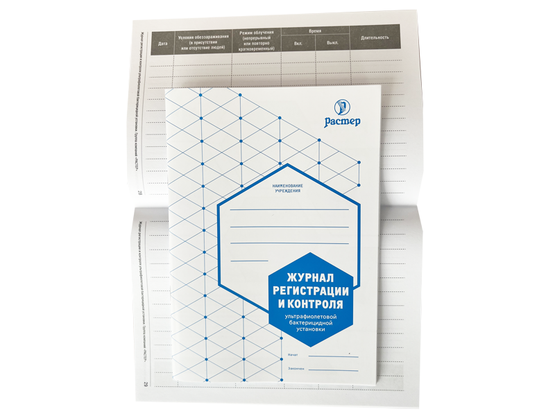 Журнал регистрации и контроля ультрафиолетовой бактерицидной установки, формат А5, 56 страниц, 2021, Россия (ООО "Растер")