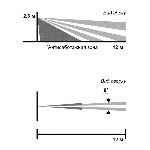 Пирон-8Б (ИО 309-33), Извещатель оптико-электронный поверхностный уличной установки, с защитой от животных весом до 20 кг, 3 пироприемника, 12м х 8°, U-пит.930В, I-потр.20мА, IP54, t-раб.-40+50°C, 180х70х60мм