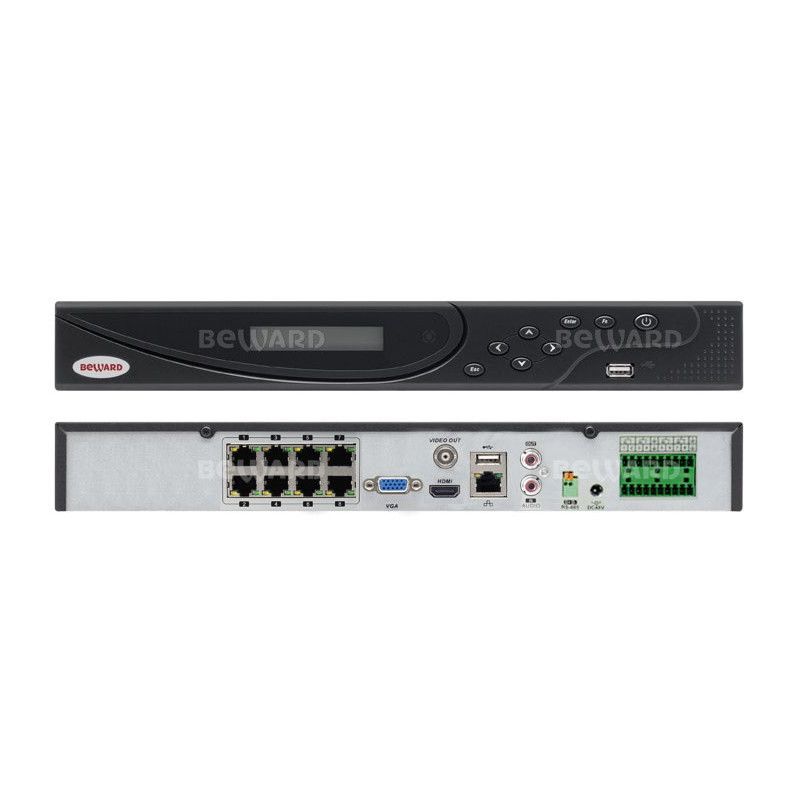 BK1216H2-P8 IP видеорегистратор До 16 IP-каналов со звуком, 8xPoE, до 96 Мбит/с, 3840х2160 (8 Мп), до 480 к/с, H.265/Н.264, экспорт в AVI, детектор лиц, подключение камер по ONVIF, легкий доступ через интернет (P2P сервис), до 2хSATA HDD 3.5'', мобильный клиент iOS/Android, VGA (тревожный монитор)