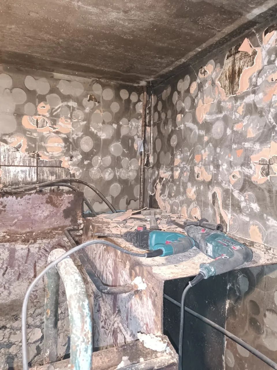 Комплекс строительных работ по сносу, разрушению или разборке перегородок, ненесущих или несущих стен зданий.