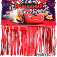 Гирлянда с блестящим дождиком "С днем рождения", Тачки - 1 шт.
