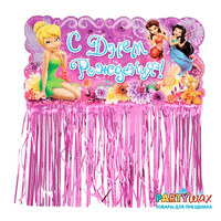 Гирлянда с блестящим дождиком "С днем рождения!", Феи, 50 х 53 см - 1 шт.