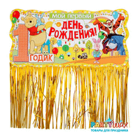 Гирлянда с блестящим дождиком "Мой первый день рождения!", Медвежонок Винни и его друзья, 50 х 53 см - 1 шт.