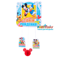 Гирлянда с гофрой "С днем рождения!", Микки, 35 х 58 см - 1 шт.